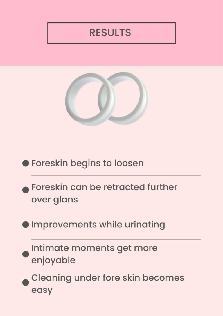 After using phimosis rings and phimosis cream combination, the results under routine circumstances are as depicted in the picture*. Results will vary from person to person.