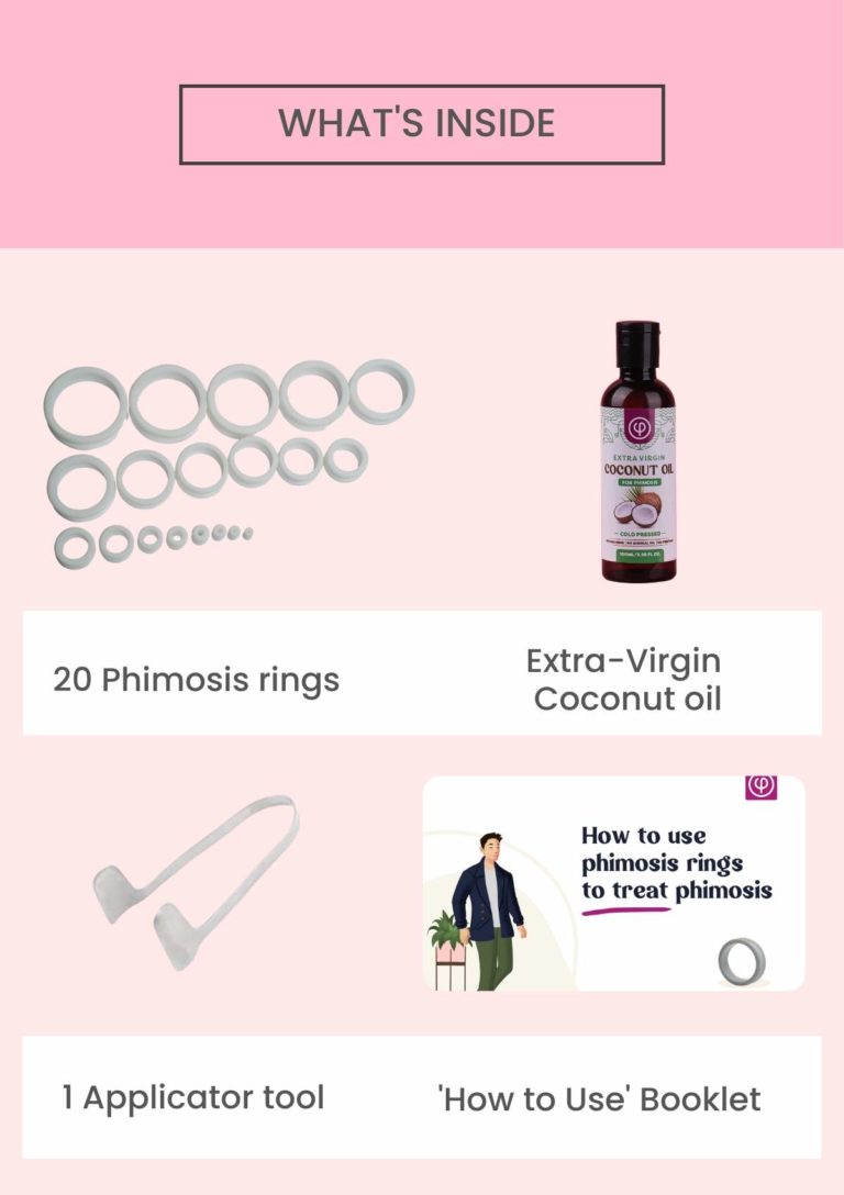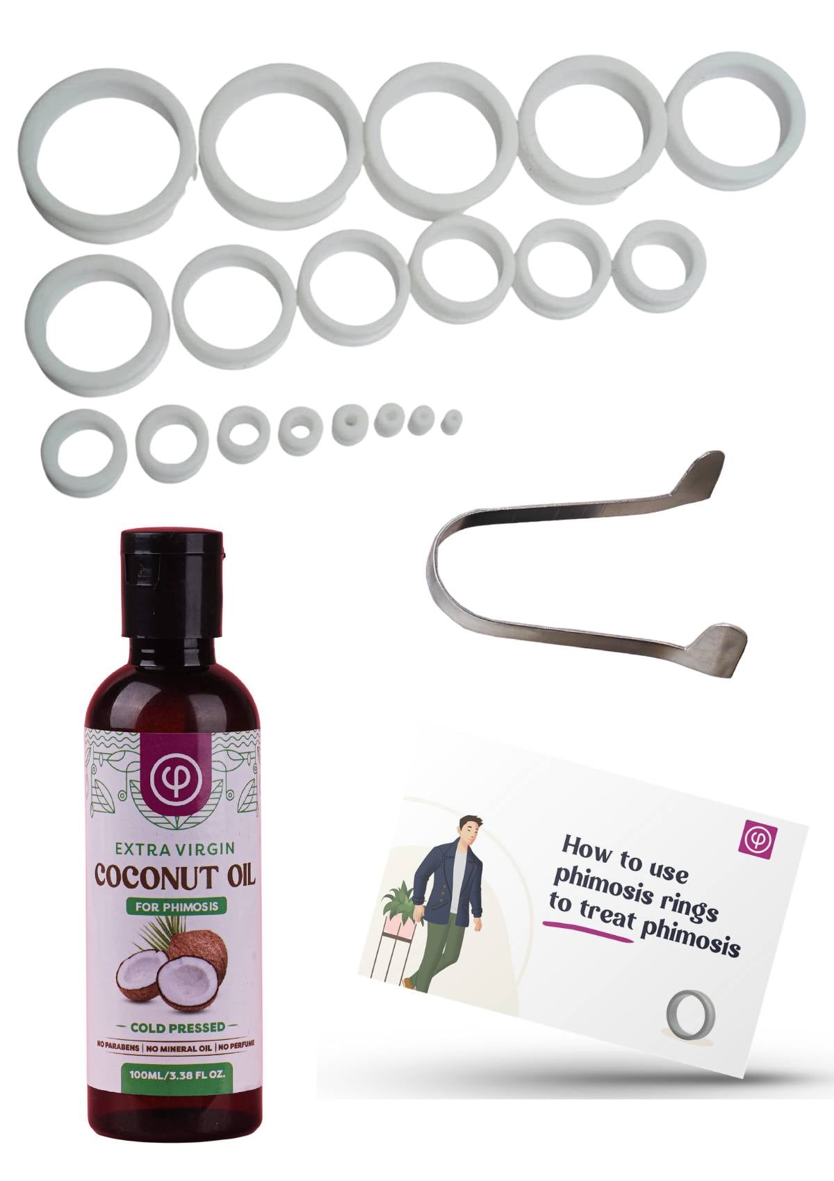 Phimosis Stretching Rings (20 Rings set) With fore-stretch phimosis cream, Extra virgin coconut oil, Ring removal tool and ‘How to use’ booklet